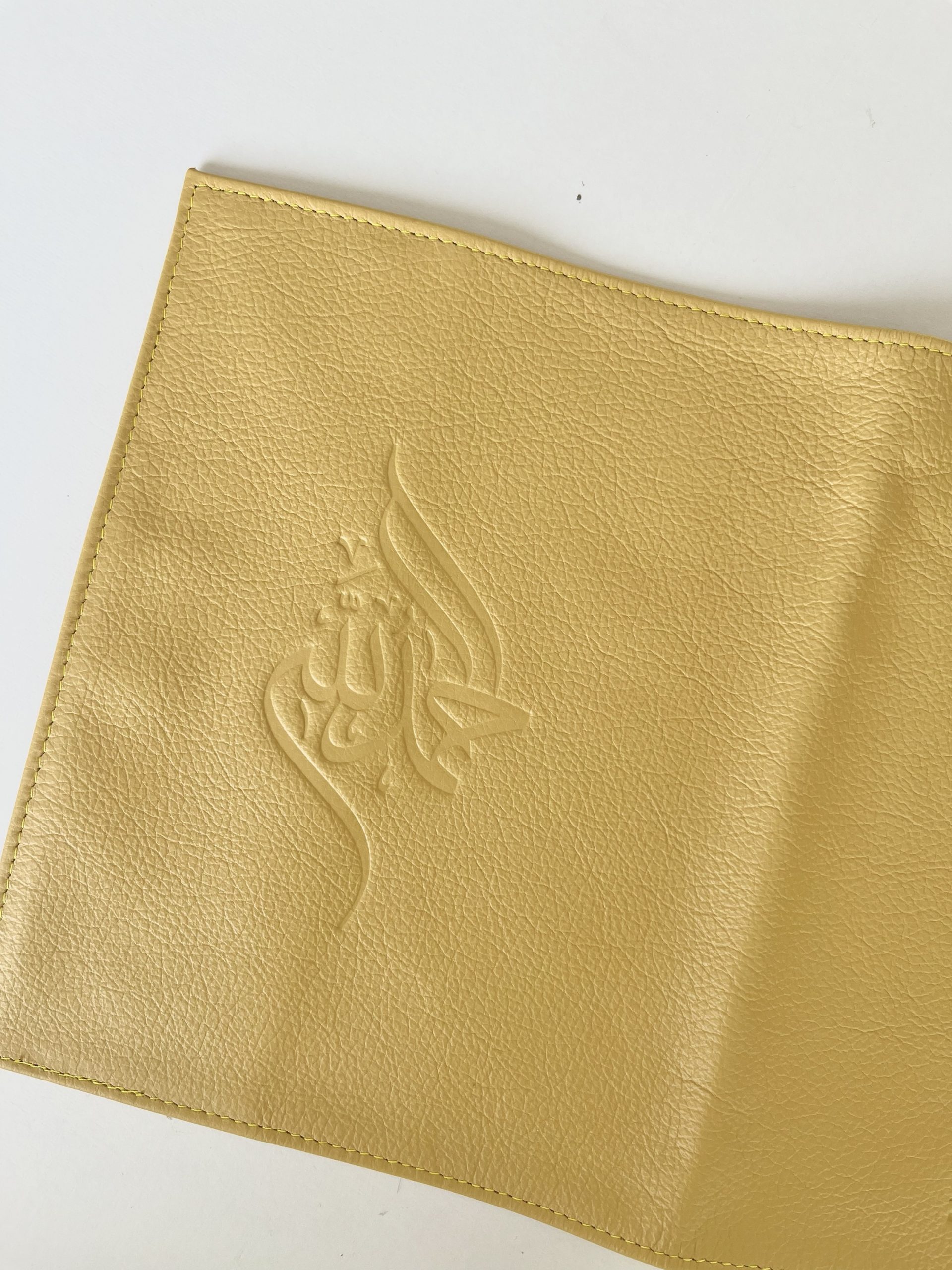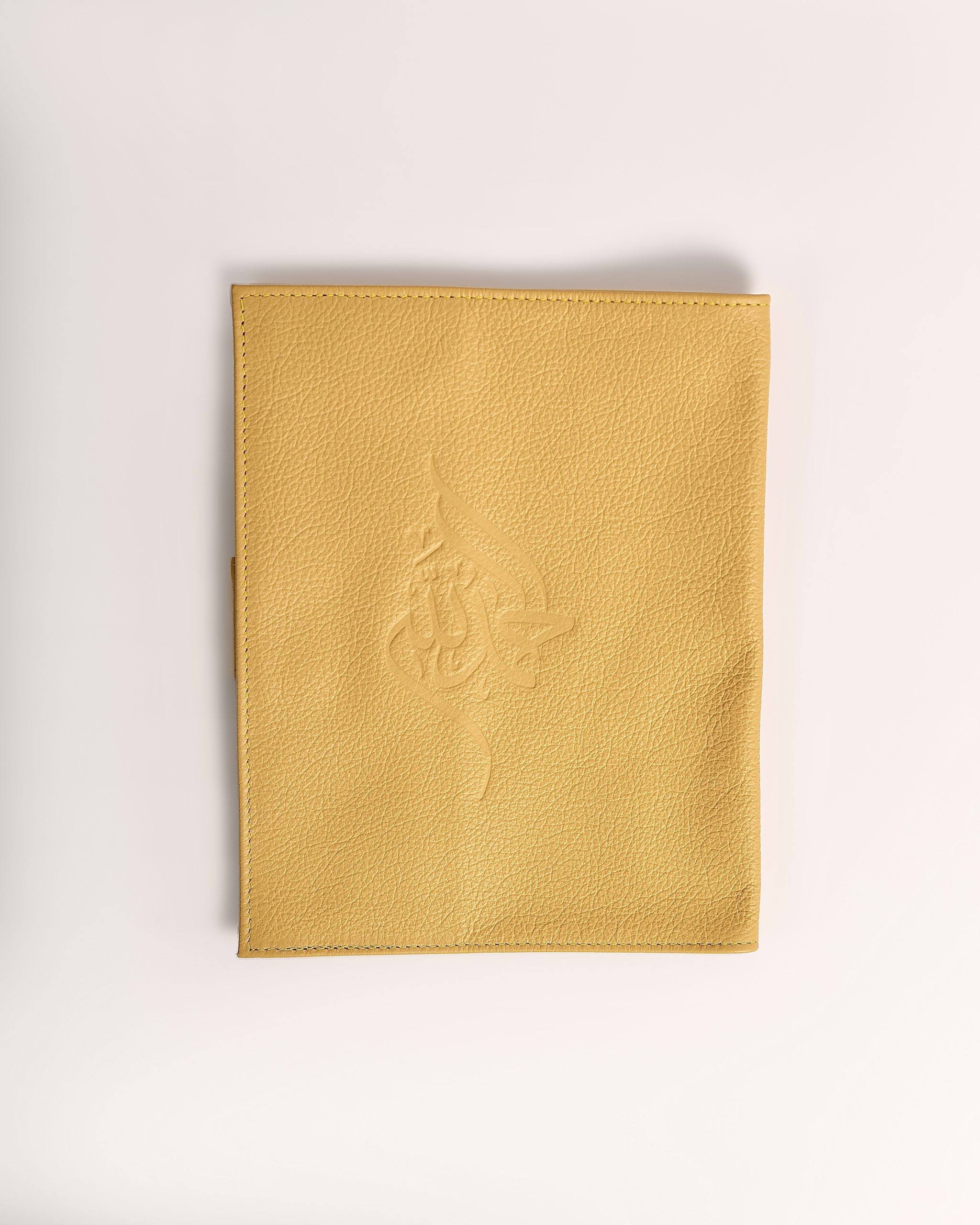 The Liyaan Quraan cover is handcrafted locally with the most skilled craftsmanship using the finest quality full grain genuine leather. The front is embossed with Alhamdullah in arabic calligraphy with an option of either Gold/silver foil or no  foil (plain embossing).